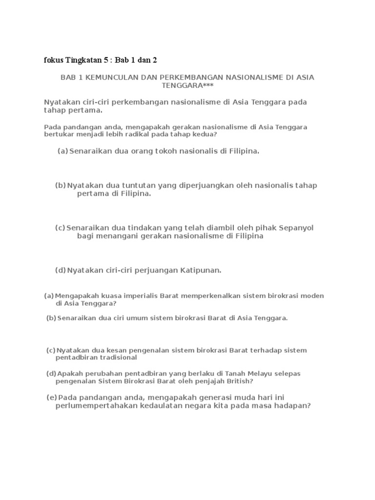 Soalan Kbat Sejarah Gerakan Nasionalisme